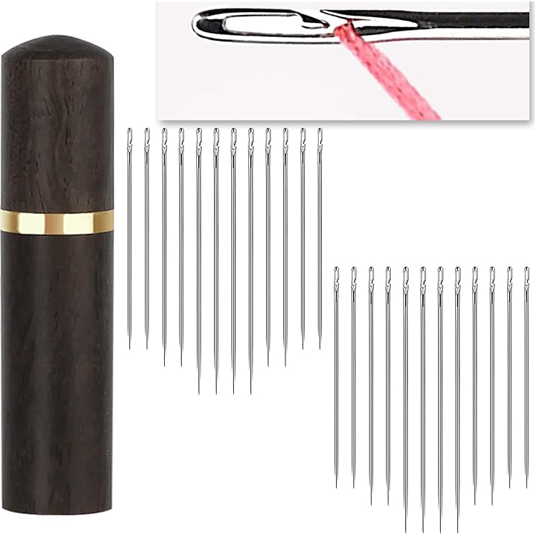 Amazon Com 24 Pieces Self Threading Needles Easy Threading Needles And 4 Pieces Large Eye Hand Sewing Needles With 2 Pieces Wooden Needle Case For Storing Handmade Sewing Embroidery Needle Accessories